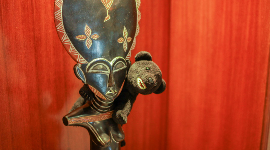 さらにアフリカの布で腕を吊って。