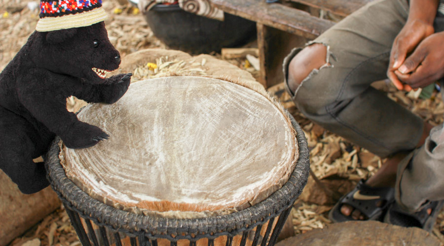 途中立ち寄ったところで、ジャンベ(西アフリカの太鼓)を