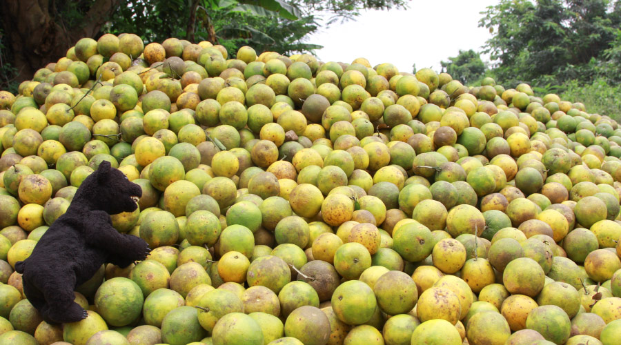 道路沿いに大量のオレンジの山が出現!