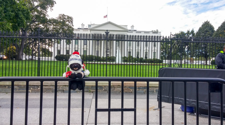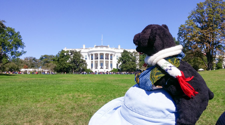 ホワイトハウスをバックに記念撮影。