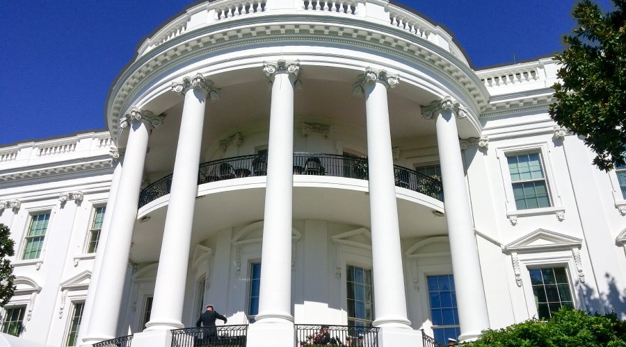 ただいまホワイトハウスのバルコニー真下に来ております!