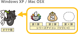 1.上のボタンをクリックします。2.ダウンロードされたファイルを ダブルクリックするとStuffit Expanderという ソフトで解凍されます。 3.解凍されたフォルダにオマケをいれてお使いください。