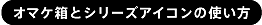 1.上のボタンをクリックします。 2.ダウンロードされたファイルを ダブルクリックすると解凍されます。 3.解凍されたアイコンファイルを 「マイドキュメント」などの適当な場所に移動します。 4.オマケフォルダにしたいフォルダをを右クリックします。 5.メニューから プロパティー → カスタマイズ(タブ)を選択します。 6.いちばん下の「フォルダアイコン」内 「アイコンの変更」ボタンを押して、出てきた パネル内で先ほどのアイコンファイルの場所を指定。 7.「OK」をクリックして終了です。