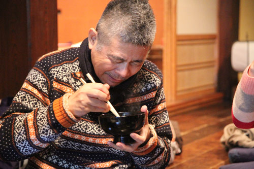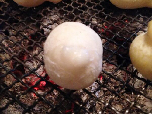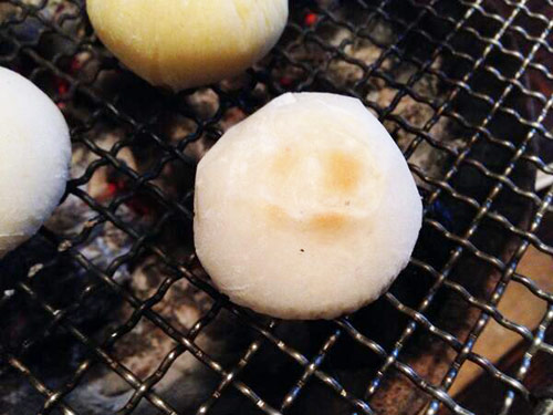 ‥‥いよいよお雑煮だ(もちを網にのせる)。
