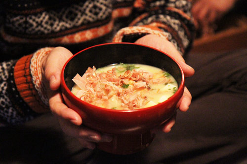 じゃ、まずは白味噌のお雑煮からお出ししますね。