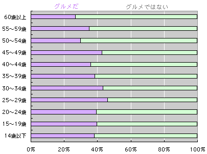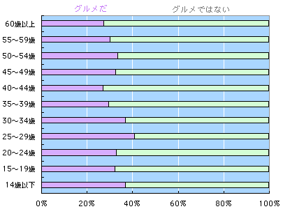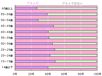 「日本人は、けっこう、 グルメではない」 ん? なんだか変な言い回し? いえいえ。しばらくお待ち下さい。 後半のメールにいたるうちに、この言葉、 必ず納得していただけますから。 まずは、年齢別です。