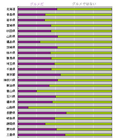わずかに、「グルメではない」が優勢です。 ‥‥意外でしたか? 「日本人の思いのものさし」に当てはめると どうでしょう。 ●日本人の思いのものさし