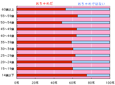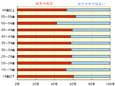 ‥‥‥‥女性の方がおちゃめです。 これまでの「日本人の思い」では、 女性の方が「グルメ」で「働き者」で「おちゃめ」です。