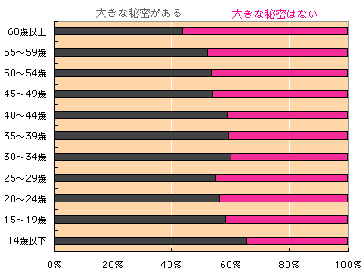 きゃあ。こんなメールもいただいていて、 ちょっと怖い!! ね、ね、年齢別に見てみましょう。 そりゃーやっぱり、 人生経験の長い方が、秘密も多くなりそうですよね?