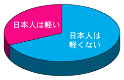 うーん。だいたい結果と同じですね。 「日本人は軽くない」と みなさん思っていらっしゃいます。 さて。 「軽さって、なんの?」 とのお尋ねの多かった今回。 その答えは、いろいろでいいんです! 「軽さ」という言葉をキーワードに、 みなさんひとり一人が 自分の外側や内側を 見えない“はかり”や“ものさし”で あちこち計ってみる。 そしていろいろな自分を発見する。 それがこのコンテンツの楽しみのひとつでは ないかなと思っています。 これからも、思ったままにお答えくださいね。 自分をお楽しみあれ! メールを紹介します。 特徴としましては、 「軽い」と答えた方 ↓ 「年を経て、軽さを身に着けた」 という表現が目立ちました。 いわゆる「軽薄」ではなく、 自分を自由にする「軽さ」のことのようです。 「軽くない」と答えた方 ↓ 「軽さにあこがれる」 と書かれた方が多くいらっしゃいました。 以上のことから、 「日本人は軽くないけれど、 軽さにあこがれている」 と言えるのではないでしょうか? 軽さにあこがれる方は、 カルバンクラインを着たり、軽井沢やカルカッタに 住んだり、カルボナーラスパゲッティを食べたり、 カールスモーキー石井さんの歌を聞いたり してみてはいかがでしょうか。 カルメンマキさんは、軽くなりすぎたときにどうぞ。 ‥‥すみません。ダジャレが好きです。 ●「軽い」について 私は軽いです。 クラブなどに遊びに行って、声をかけられた人に 電話番号を聞かれるとそれほど迷いもなく教えます。 相手が私を好きで、私は好きな人でなくても 一緒に遊びます。 知らない人がたくさんいる飲み会などに行っても すぐに盛り上がります。 時と場合によって使い分けているということも あるかもしれません。 軽いのがいいとも思いませんし悪いとも思いませんが 軽い方が楽しくはあります。 でも、楽しいだけではダメだな、と思うこともありますが それはこの年齢(25歳過ぎ)になってから。 若いうちはいいんじゃないでしょうか。 (東京都・女性) 年齢を重ねるにつれて 軽くなっていっているように思われます。 3年前に社内異動があり、 その後から判断が異常に早くなり、 迷わずに白黒つけるようになりました。 また、物事悩んでも悩まなくてもどうにか成るし、 どうにか出来るようになりました。 変な自信が付いたせいでしょうか。 (かんな・福井県・女性・37歳) 希望をこめて「軽い」に一票! 人間関係でも仕事でも、上っ面だけだったり 何も考えてないのではもちろん困ります。 でも、「気軽」さや「フットワークが軽い」なんてのは 人生を楽しむ上でとても大切なことなんじゃないかと 思います。僕はそんな人間でありたいです♪ (ぶちくん・鎌倉市・27歳) 僕が考えた『軽さ』は人間関係についてです。 僕は誰とでも付き合う反面、 いつも一緒にいるようなつるんでる友達はいません。 友達同士という島々を転々としているような感覚で 生活しています。 もちろん人間関係が希薄だとかそういうわけではなく、 僕が深い付き合いだと考えている友達もいます。 しかしそういう友達がイコールいつも一緒にいる というわけではないのです。 『よく一人でいるね』とも言われるし、 自分でもそう思います。 言い換えれば、『人間関係におけるフットワークが軽い』 ということでしょうか。 (土佐・東京の西のほう・もうすぐ20歳がおわる) 私は軽いに投票しました。 実のところそれに気づいたのは、 35年間生きてきて、やっと最近なのです。 例えば、恋愛に関しても、“自分は一途”と ずっと信じてきましたが、どうもそうではないらしい。 自分では、とても真面目くさっているつもりですが そんな自分をちょっとからかい気味に見ている 私を発見しています。 最近、肩の力が抜けてきたというか、素の自分のキャラを 素直に受け入れることが、ようやく出来るように なったなぁと感じる今日この頃です。 (東京都・35歳・女性) 軽い方に投票しました。 軽い=こだわりがない、浮ついている 軽くない=大事と思うものに固執する、 というイメージです。 ズブズブに重い女だった数年前を振り返ると、 若いうちは世界を全部背負おうとしてたから (しかもすべて背負えると思っていたから) 軽くなかったんだろうと思います。 重すぎて引かれることがなんと多かった我が人生よ。 自分の身の丈と背負える重さをわかったような気が してからはあまり物事にこだわらなくなりました。 ハンドルできない以上のものは手に入ったらラッキー、 くらいの感じ。 諦め入ってるように思うと悲しいですが、 気分も軽くてすごしやすいです。 (ナナシ・東京都・来年30歳) 軽いです。 そして年をとることが軽さに繋がるという方の気持ち、 すごくわかります。イメージは、昔のご隠居。 大切なことと向き合う真摯な姿勢はあるものの、 当たりはあくまでも軽く、ときには冗談混じりで。 私が思うに、 若いときの方が「捨てられない大切なもの」が多くて、 軽くな