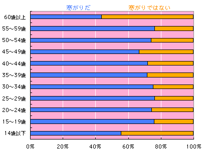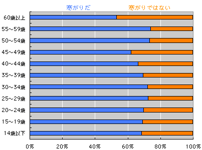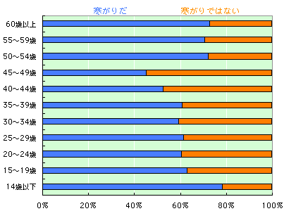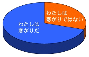 よく女性は冷え性、男性は寒がりが少ない などと聞きますが、 比較すれば男性の方が少ないものの、 立派に寒がり優勢です。