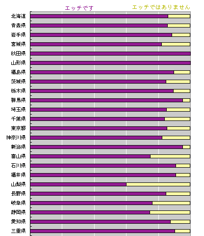 「エッチです」ベスト3は、 秋田県 山形県 佐賀県 いずれも100%です。 「エッチではありません」の ベスト3は 1位 山梨県 2位 鹿児島県 3位 滋賀県 でした。 次は、みなさんによる結果の予想です。
