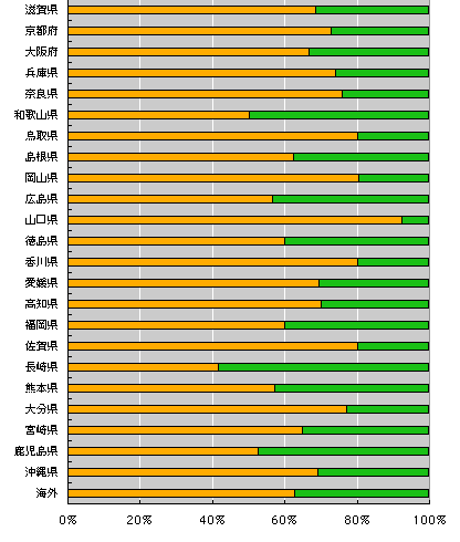 だいたい、全体の結果と同じですね。 びみょうに女性の方が多いようです。 年齢別、性別など、詳しい集計をご覧ください。
