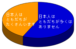 ん? ええと、 ともだちはたくさんいない、 という方が、 たくさんいらっしゃいます! ちなみにこの結果を「日本人の思いのものさし」でいうと、 「日本人は、それはもう ともだちが多くありません」 と、なりました。 ちょっとどっきりする結果です。 それぞれの集計を見てみましょう。