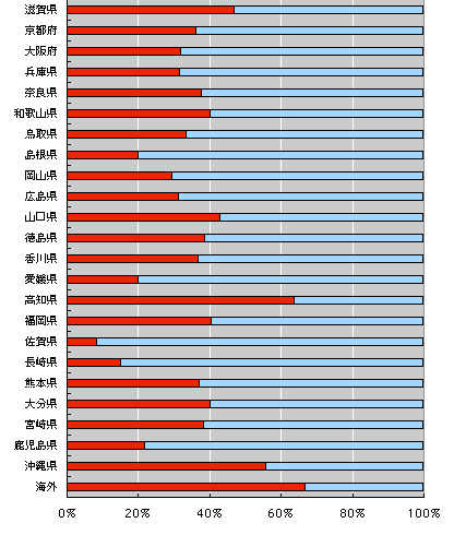 社会に出るお年ごろから、 強さがのびていますね! それにしても、45〜49歳の男性‥‥。 どうしちゃったんでしょうか‥‥。 ま、そっとしておきますが! では、次は、住んでいるところ別です。