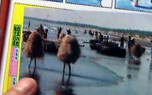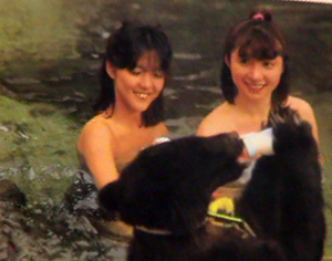 いっしょの温泉に入っている絵ハガキなんですよ。