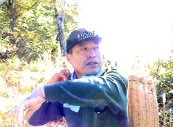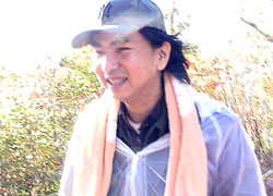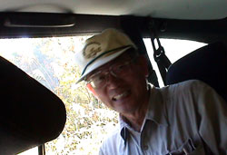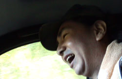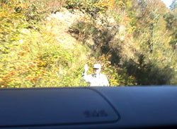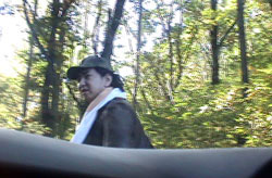 ■ニュース その1■ キノコ狩り、恐怖の迷宮。 第5回 命を拾ったな、いま。 ここで、車はとうとう 荒くれオフロード、ワイルド林間コース、 つまり完全なる山道に入りました。