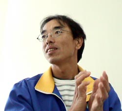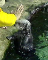 ■ニュース その2■ 海の生きものにフォーリン・ラヴ。 第9回 ふわーっと、ふわーっと さわるんだよ! マリンワールド1日職員体験も、 そろそろ終盤です。 最後に出会う水棲動物は、ラッコ。 警戒心が強い動物ですから、 今日はエサを食べてくれるかどうかすら、 わかりません。 マリンワールドのラッコ担当、高司さんです。 よろしくお願いします。