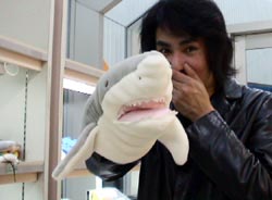 さて、本日の体験はこれでおしまいです。 これから売店に向かいますが、 羽田での痛い教訓をいかし、 今日のおみやげは吟味して選んでください。 合言葉は、いいですか、 「ひとつにしよう、おみやげは!」 やはりサメグッズが気になりますか。 本も「ドッサリ買い」しないようにしてください。 そんなにニコニコしてもだめです。 腹話術で話す番長です。 ぬいぐるみは、あとさき考えて買ってください。 なんだか女子高生の買い物に つきあっている気分になってきました。 結局番長が買ったのは、 サメの4Dパズルでした。 「メガマウスだと思って大事にします」