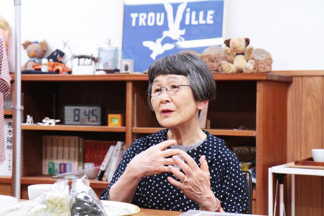| 大橋 | あのね、いろんな服を その時代時代で着てきたでしょ。 そうすると、今、ちょうど、 何もないものの方が 着やすいような気がしたんですよ。 というのはいろんな組み合わせができるので、 ご自分の持ってらっしゃるのとも合わせられるから。 それに、おばおばスタイルっていうのか、 わからないけれど、 いろいろデコラティブなものもありますよね。 突然豹の顔がこうやってなってたりとか、 |