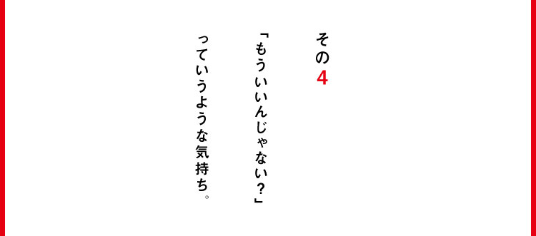 | 糸井 | だから、もうちょっと経ったら オッケーなのかなって思って、 二周りも三周りもしてるんです。 |