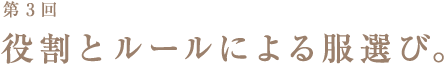 | 田村 | うん。自分が属するべきトライブスの中で、 ルールが厳格にあるわけ。 ほんとは厳格になんて、 ないはずなんだけど、 着る人が、「これはいいのか?」みたいに、 すごく真面目に考えちゃうわけ。 |