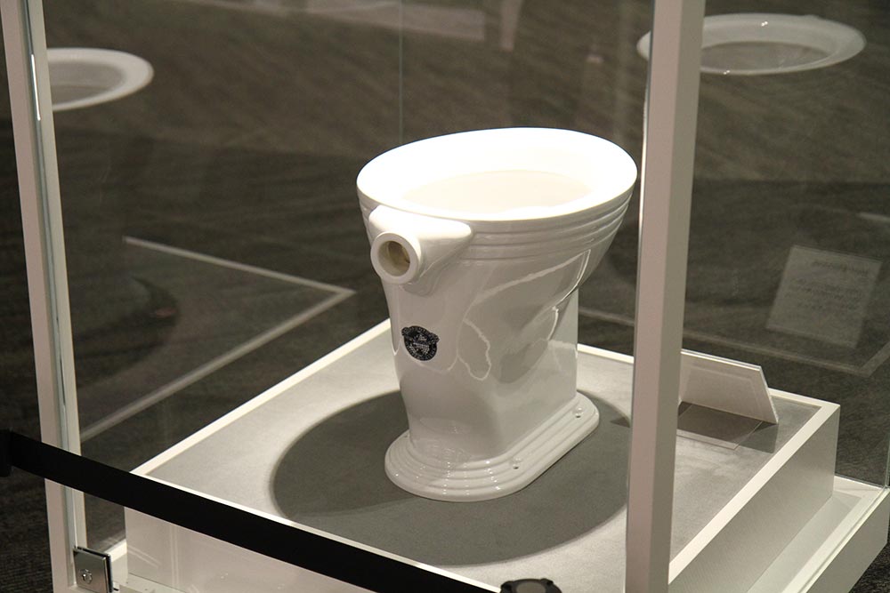 国産初の腰掛式水洗便器(復元)。TOTOミュージアム所蔵。