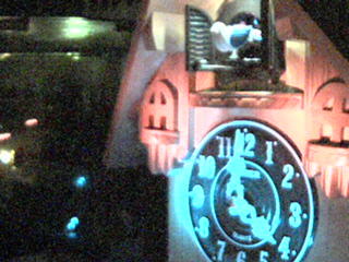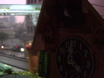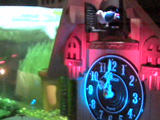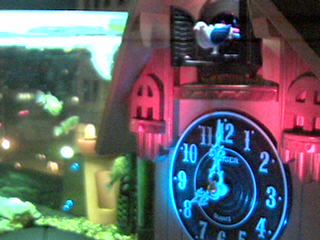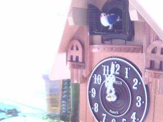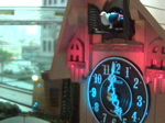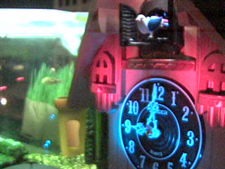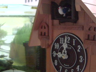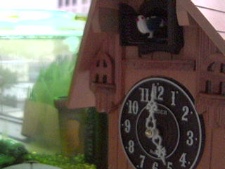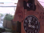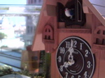 鳩時計越しにミドリフグさんを写す鳩カメラの