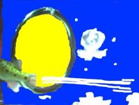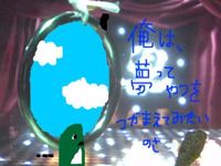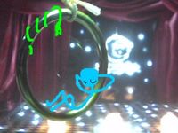 輪っかを鏡に見立てて写ったオバケちゃんは、