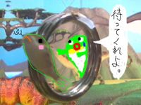 この写真はミドリフグさんの頭が輪の奥にあって、