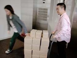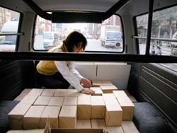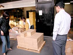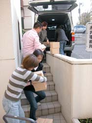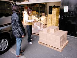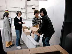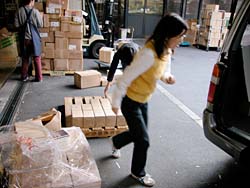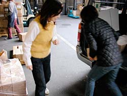 昼下がりのオフィスに電話が鳴った。 AOR西本の席である。 「はい、糸井事務所です。 え? はあはあ、えっ! そうですか! ありがとうございます!」 テンションの高い受け答えに、 職場の誰もがなにごとかと見る。 電話を切った西本が高らかに告げる。 「来た来た来た、もう来た! 紀伊國屋書店から1000冊追加発注!」 驚愕する一同。 だって、紀伊國屋書店で売り出されたのは ほんの2日前のことである。 しかも、全店舗ではなくて、 一部の紀伊國屋書店での販売である。 ──なのに、もう、追加発注? ともあれ、吉報を拍手で迎える一同。 よかったよかった、すげーすげー。 「でも1000冊、どうします?」と 冷静に切り返したのは在庫管理を担当する ナカバヤシである。 「倉庫から出すとなると、 いまの発送作業の予定がくるうかもしれません。 明日には出せますけど、 それだと年内に全国の紀伊國屋に 届かないかも‥‥」 今日中に1000冊を、 紀伊國屋の発送センターに届けなければならない。 しかし、倉庫から出すにはタイムロスが生じる。 すると、西本がひらめいた。 「事務所に、明後日送る予定の1500冊がある。 あれを紀伊國屋分に回して、 明後日送るぶんは倉庫から出せば?」 「1000冊も、どうやって?」 「クルマで」 いっそ自分たちで発送センターまで 運んでしまおうという作戦である。 事務所から発送センターまで、 高速を使えば1時間もあれば着くはず。 幸い、社用車のハイエースは空いている。 よしよし、それなら積み込みだ、と 一同は盛り上がりかけたが、 ことはそう簡単に進まなかった。 「運転手はどうするの?」 「うーさんは?」 「風邪でダウンしてる」 一難去ってまた一難とはこのことである。 悪いことに今日はバンを運転できる人間がいない。 ていうか、そもそも力仕事を任せられる 男手がほとんど出払っているのだ。 途方にくれる乗組員一同。 ──そのときだった。 「あたしが運転しよう!」 「あかりさん!」 「バンの運転経験は?」 「ない!」 どひゃー、とずっこける一同。 「けど、なんとかなるやろ」 とにかく時間がない。 細かいことは現場対応。 「なんとかなるやろ」を合い言葉に、 一同は行動に移った。 そういうわけで12月25日、 「女だらけの『オトナ語』配達大作戦」が 決行されたわけである。 どちらさまもメリークリスマス。 事務所の片隅に積まれていた『オトナ語の謎。』。 見るからに弱々しい発送風景です。 手前でふらついているのは、 経理担当のナガサカ。大丈夫かなあ。 ![]() 台車に本を積んでいきますが、 その台車の小ささに呆れます。 大丈夫かなあ。 ![]() とにかくどんどん積んでいこう。 しかし、見るからに計画性のない積み方。 大丈夫かなあ。 ちなみに、ひとつの包みに10冊入ってます。 それが100個必要です。おいおいほんとかよ。 ![]() 台車がいっぱいになったら、下へ運べ。 男性陣でただひとり作業に参加したシェフ武井。 ただし、運転免許なし。 ![]() エレベータが下についたら押せ! 手の空いてるやつは先回りしろ! 写真左を走り抜けているのは、 事務所に居合わせた、ゆーないとさん。 ![]() 下に運んだら、バケツリレーだ! 「アイデアがないときは努力で補え!」 というのは我が社のモットーのひとつ。 発言者はもちろんdarlingこと糸井重里。 ![]() とりあえず、半分ほど積んでみたところ。 いやはやなんとも素人くさい積み方である。 いわゆる金の延べ棒状態。 こんなんで大丈夫かなあ。 ![]() 「かまへんかまへん」 とにかく積んで、あとは現場対応! しゃにむに積み込む、あかりとオガー。 ふと我に返って心配そうな、りかとナガサカ。 とりあえず、積み込み完了!! いざゆけ我らのハイエース! 紀伊國屋発送センターへ! ![]() 「ほないくで!」 と言ったかどうかは知らないが、 通天閣あかり、ドルルルとエンジンを吹かし、 ハイヒールでアクセルを踏む。 慌てて後部座席に飛び乗るナカバヤシ。 ドルルルル、ドキャーーン! 我らがハイエース、 国道1号線を猛スピードで北東へ走る!! すると、後部座席では‥‥。 ![]() 「きゃーーーー!」 言わんこっちゃない。 揺られて、本が右へ左へ。 おさえるナカバヤシも右へ左へ。 ![]() 「しっかりつかまっときや!」 ガシュッ、ズガッ(稲妻シフトチェンジ)! ギャグァワワワァーン!!!! ![]() 「きゃーーーーー!」 ![]() 「どけどけどけーい!」 ガンッ、グワィィィィン(逆ハン切ってドリフト)! ブシュワァァァァアアアッ!! ![]() 「きゃーーーーーー!」 (以下、1時間ほどくり返し) ![]() 「む! 近い! 近いで、ナカバヤシ!」 ![]() 「見えたでーー!」 ![]() 「ほんとだーーー! 紀伊國屋だーー!」 ![]() グキャキャキャキャァアアアッ! (カウンターを当てて制動) ![]() 「おろせ、ナカバヤシ!」 「はい!」 ![]() 「違うがな、こう持つんや!」 「ははぁ、なるほど!」 ![]() 「もうチョイやで!」 「はいなっ!」 ![]() 「これで全部か?!」 ![]() 「ひい、ふう、みい、よお、 ‥‥さんびゃくにじゅうよん、 ‥‥ろっぴゃくとんでなな、 ‥‥せん! 全