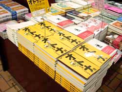 ※都内の書店に「ほぼ日」乗組員が 『オトナ語』POPを配達しに行きます。 ●三省堂 自遊時間 ●三省堂 神田本店 ●ブックファースト神田駅前店 いってきました神田ダヨ!!! 神田と言っても今日、 神田正輝さんは何ら関係ございません。 『赤いスイートピー』は『オトナ語の謎。』に 少しだけ関係していますが、 むろん、松田聖子さんとも関係はありません。 今日は三省堂本店へ向かうのでございます。 そう、『オトナ語の謎。』の新しいPOPを届けるために。 わたしはPOPと幸せを届けるウーマンさっ。 さあ着いた着いた、ここが三省堂本店だね。 「自遊時間 三省堂書店」 ん? 何か変わったのかしら? きれいになってるし、CDまで売ってるし! まいっか、おおあったあった『オトナ語の謎。』。 黄色とオレンジのはざまの あのハデ色表紙がうぅっ、まぶいぜベイベー!!! 4段上には、『智慧の実』本もあります。 ![]() ↑見事に端と端!!! 「おはようございます。 あやしいものではありません!」 ご挨拶を済ませ、 それでは作業に取りかからせていただきます。 ちゃちゃちゃっとな。 じゃじゃじゃーーん。 小さいPOPはビヨンビヨンにはさみ本の近くへ。 大きい方は本の下に貼る。というのが、 あたしの実験結果の中で 一番キレイなパターンかなあと思います。 ![]() ↑これがビューティフォーな感じの貼り方。 きらりん。 ありがとうございました! しかも追加の注文もいただきましたー。 サンキュウ、自遊時間さん!! これからも自遊な時間の提供よろしくたのむぜっ! さてさて次は‥‥ 自遊時間を出た途端に目に入ったのは‥‥? 「三省堂 神田本店」 ああへえそうなんだー。 やっぱさっきのはさっきので、 神田本店はまた別ものだったのね。 どうりでショップ自体が1フロアしかないわけだわ。 おおいたいた。 『オトナ謎の語。』さん。 新刊として2ヵ所、 そして売り上げ順位の棚にもありました。 順位は‥‥9位!!! おお〜テンに入ってるんだね。ナイスナイスがんば!! 「おはようございます。 わたくしあやしいもののように見えますが、 そうじゃございますん。かくかくしかじか‥‥」 では作業させていただきまーっす! たくさん『オトナ語の謎。』が積んである所に 前のPOPがありますねえ。 そうそう、これを、これにリニューアルするのよ。 おっとーーー? なんと今まさに『オトナ語』POPの チェンジ準備をしている私の目の前で、 『オトナ語の謎。』を立ち読みしているリーマンさん発見! 読んでる読んでる。 笑って‥‥る? ない? チェックは角度が合わずうまく出来ず。 ちょっと観察続けてると‥‥あらら行っちゃった。 わたし、まだ諦めません。 彼が次に何の本を立ち読みするか。 これはとっても重要な事だと思われ、観察してると?? なんとすぐ後ろの島にあった、 『トリビアの泉』本を手にお取りになられました〜! なるほどね。うんうん。わかるよ。 そんなこんなで、はい。設置完了〜。 ありがとうございましたーん。 ![]() ↑ドドドーーーーーーーーン! ド・迫・力!! さてさて続きましてブックファースト神田駅前店。 「おはようございます! かくかくしかじか丸書いてちょんっ」 「えーっと今日、担当の者が休みなので、 今日はお預かりしておいて、 後でこちらで設置させていただく という形になってしまうのですが、 それでもよろしいですか??」 「あーそうですかー。 よければ私が今やってっちゃいますけど‥‥」 「いやー担当の者が休みなので、 どうしたらいいのかがわかりかねますので」 しゅん。残念。 「では、どうぞよろしくおねがいいたします!」 「オトナ語の謎。」は、今日も色んな本屋さんから、 色んなお家に持ち帰られていくのであった‥‥ がんばれオト謎くん!!! (ゆーないと) ●文教堂 経堂店 先週金曜日にPOPをお届けしたとき、 『オトナ語の謎。』は堂々、 店内入り口近くの目立つ場所で平積みに! ありがとうございます! 店員さんにお礼を言うと、 「知り合いのところで完売したって言うんで、 期待してますよー。」 とのこと。はい、期待してください! そして再度日曜に訪れると、 今度は、「話題の本」のスペースに、 『オトナ語の謎。』がこっちを向いてにっこり!! ありがとうございます!! その周りには、ほんとうに今話題のベストセラーがずらり。 さらに隣りの棚は丸々「新撰組」コーナー。 必ずお客さんが目を通す空間です。 経堂店さん、感謝です! (りか) ![]() ※こちらは、オトナ語バナーを貼ってくださった方の ホームページをぽつぽつ紹介していくコーナーです。