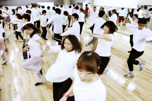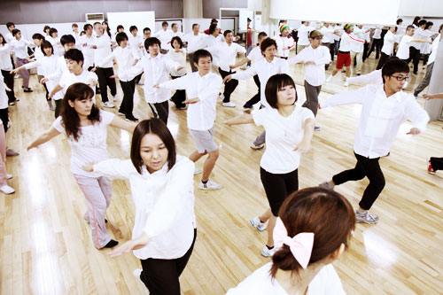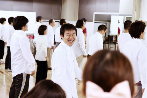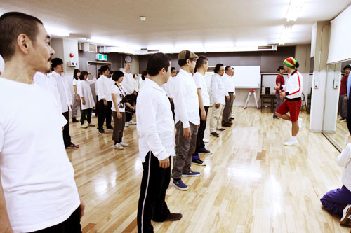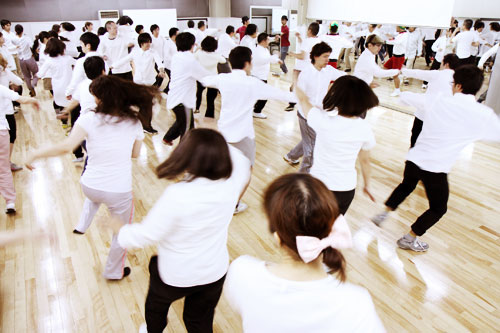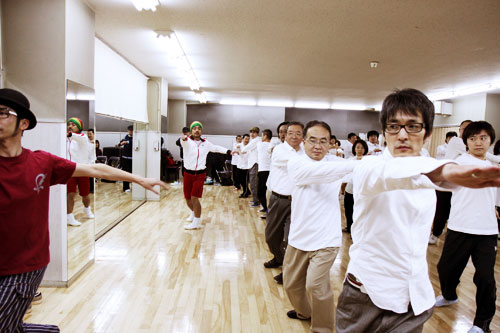 | いま、何人かの方が 逆方向にまわってますよ。 もういちど、やってみましょう、 いちに、さん、し、はい! |