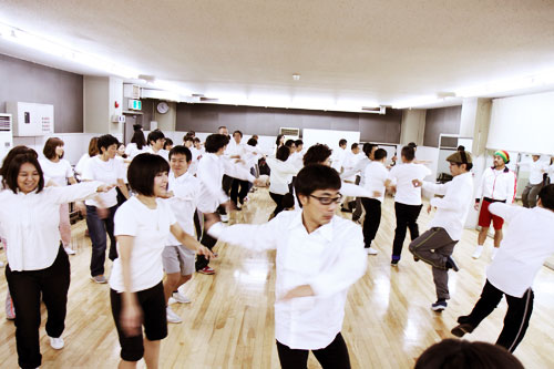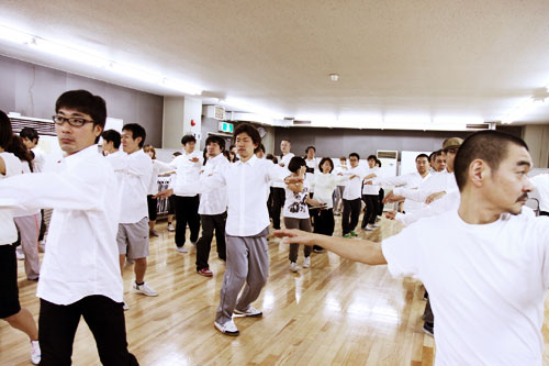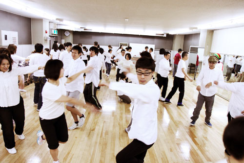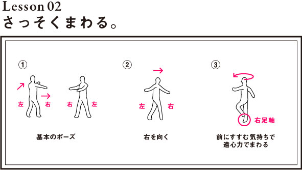 | このターンは まわるというよりも、 前に進む、です。 いいですかみなさん、 前に進もうと してください。 いちにっさんし、 |