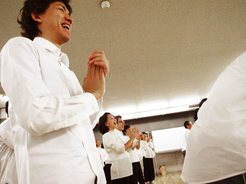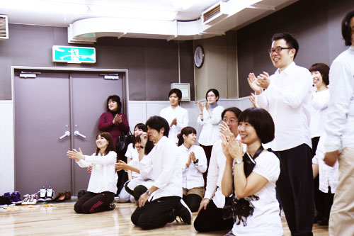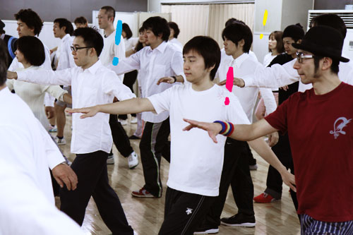 | まわったあとは、 ポーズを取りましょう。 みなさんの好きなポーズでお願いします。 なんでもいいんです、 自由に考えましょう。 そこに、自分らしさが出てきます。 ああ、いいですね! そのポーズ。 |