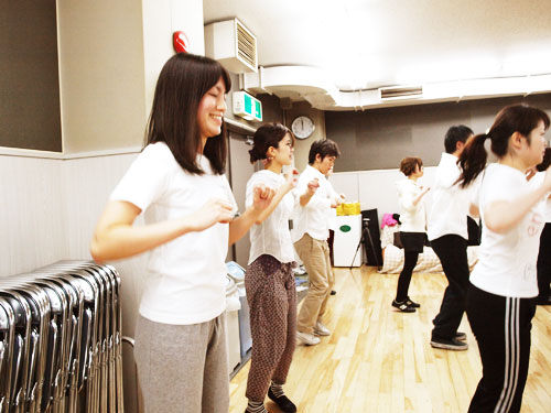 | そこがポイントです。 では、みなさんも曲に乗せてやってみよう。 早いですよ。 |