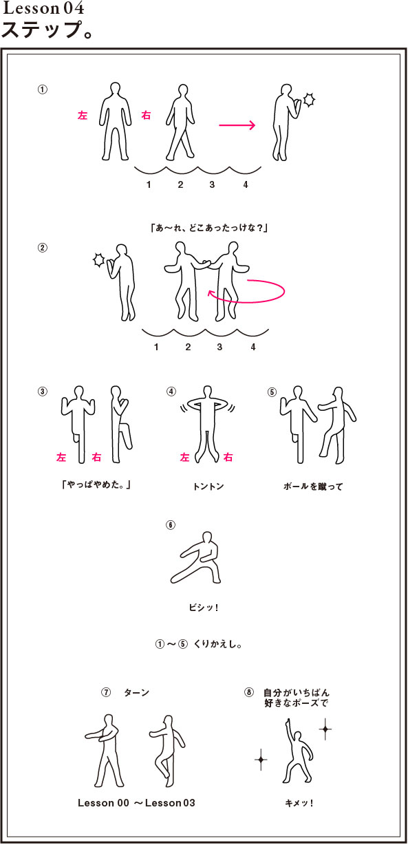 | ここは「ダンス」と考えるよりも ボールを蹴って、 足を後ろと前にする、って ふつうに思ったほうがいいです。 |