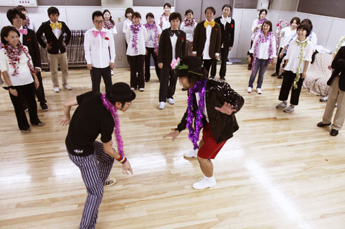 という糸井のすばらしい発言により、 パパイヤ鈴木さんと 電撃チョモランマ隊のみなさんに 最後にお手本ダンスを踊っていただきました。 |