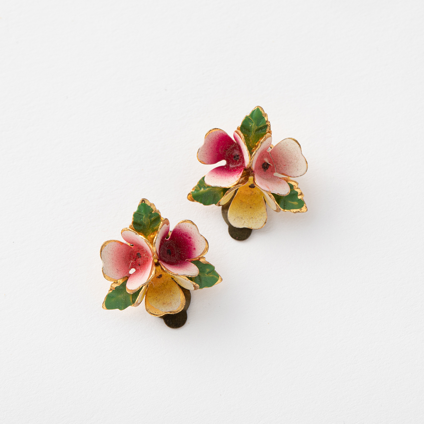 やさしい色どりの花束をモチーフにしたイヤリング。