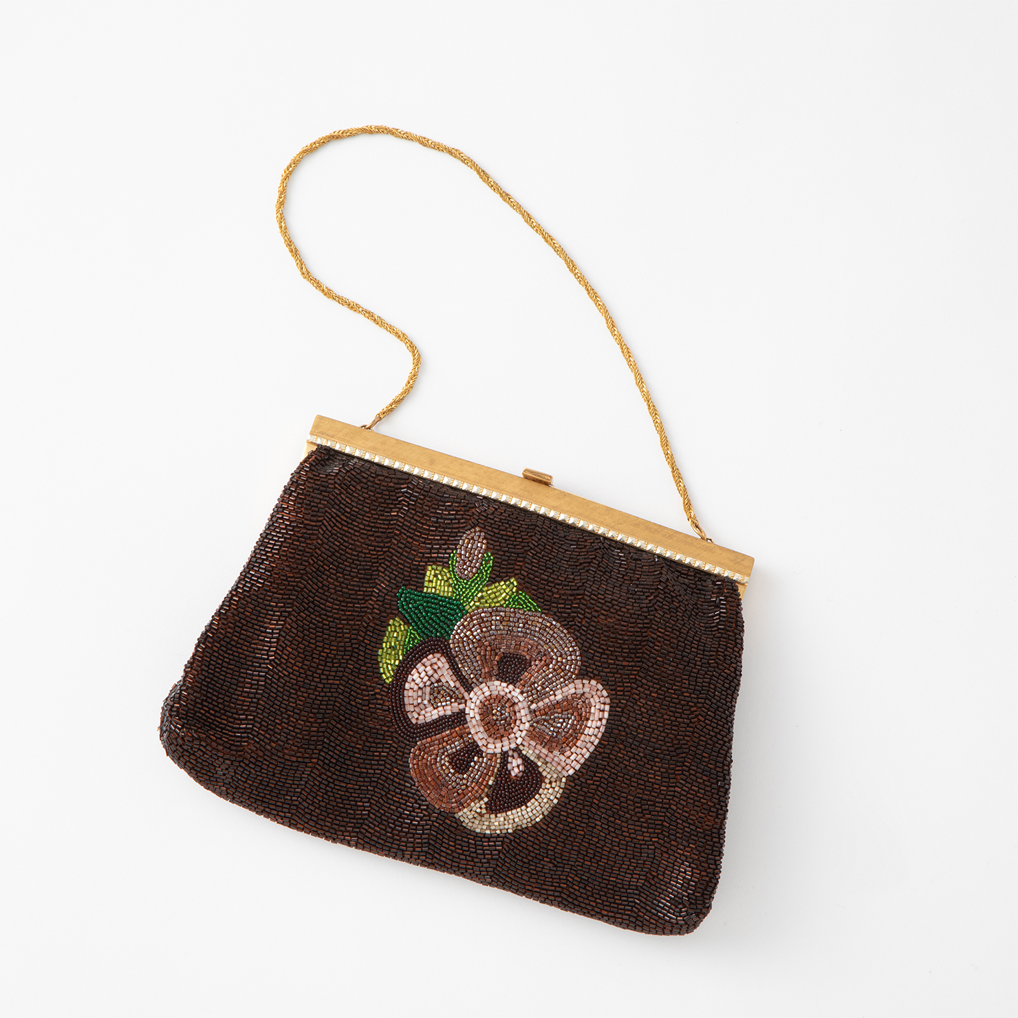 バラのモチーフをビーズ刺繍したハンドバッグ。