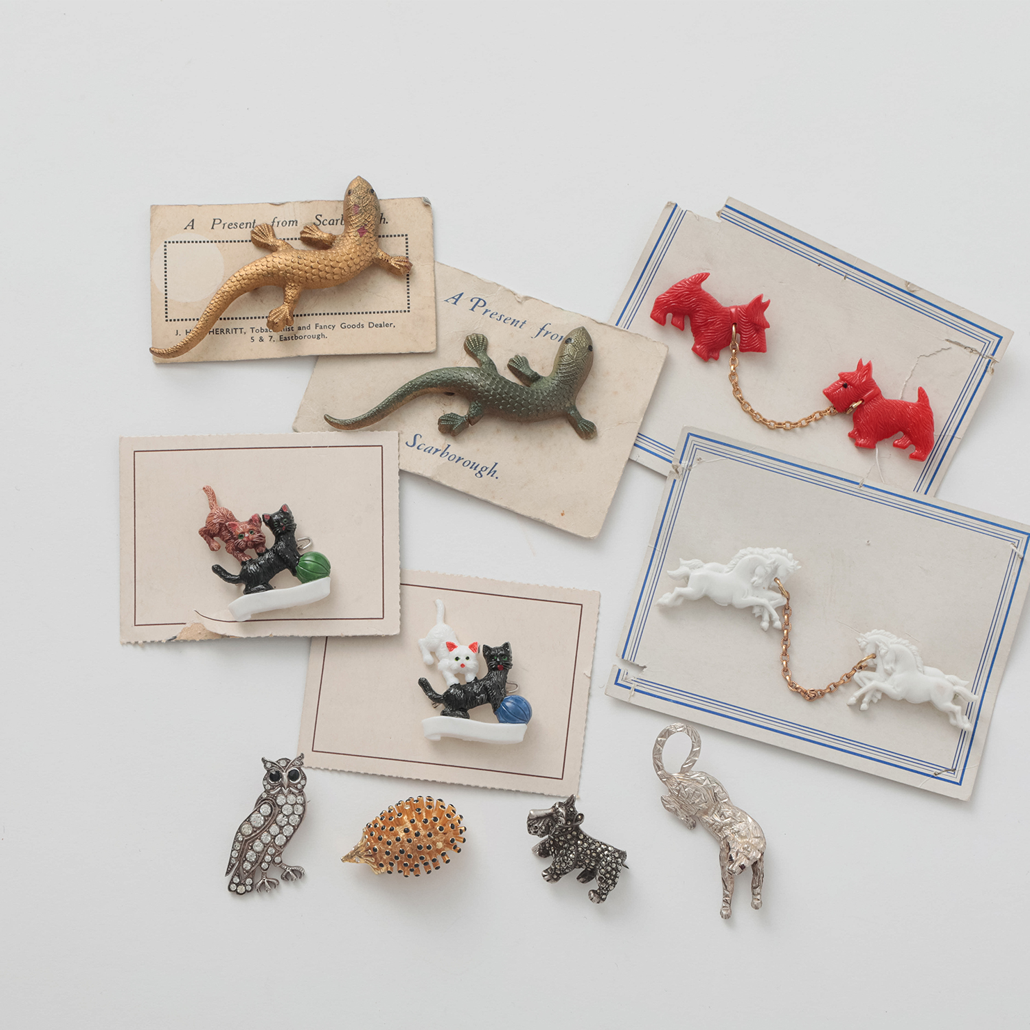 動物モチーフのブローチ。