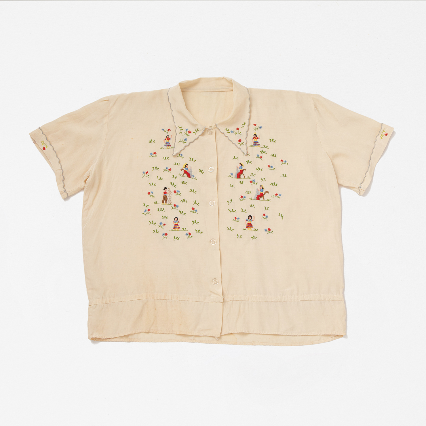 とても細かい針目のミシン刺繍が施されたブラウス。