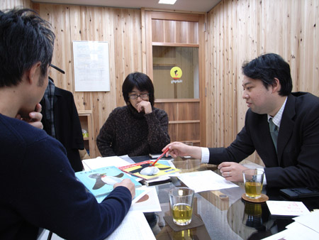 そして、編集の永田があつまって、話を始めた。 |