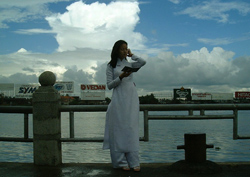 その川のほとりで、彼女の写真を撮らせてもらいました。