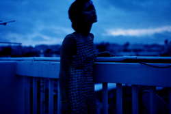 主人公の女の子が、彼女が暮らすビルの屋上で、