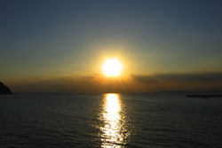 大きな夕陽が、海に沈んでいく瞬間に出会ったりします。