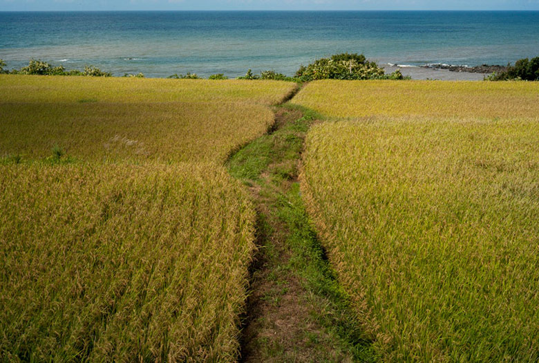 めずらしく海岸線に沿って、田んぼが拡がっています。