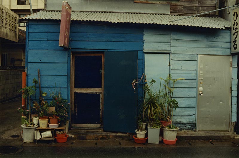 雨上がりの街の片隅で、アスファルトをしっとりと濡れて黒くテカり、雑善の並べられた植木たちは、まるでその場所に生えているかのように生き生きと存在していました。写真集『青い魚』より