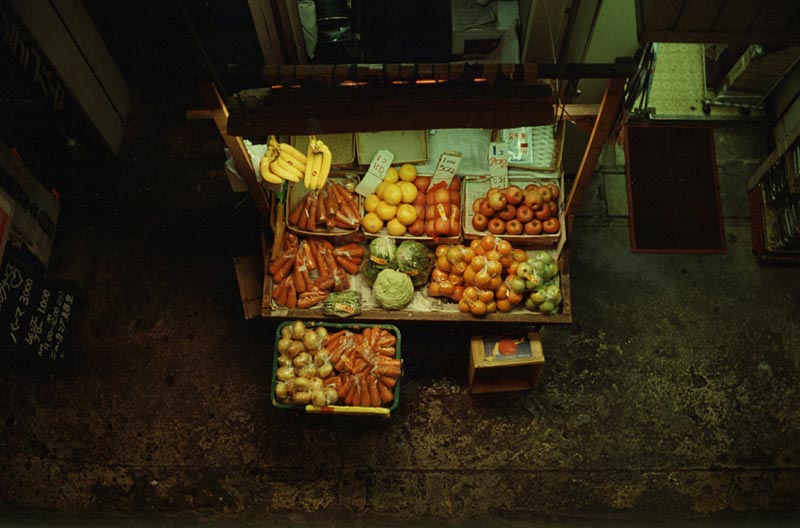 那覇の街の中心にある「牧志中央市場」の中にある小さな八百屋さん。特に、夜になると少し緑がかった蛍光灯に照らされて、あらためてこの場所がアジアの一部であることを強く感じたものでした。