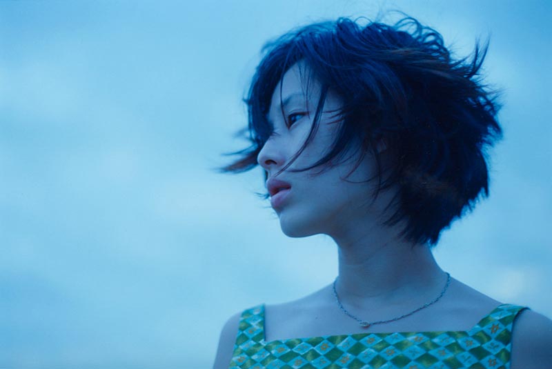 映画の撮影を終えて、数ヶ月後に、改めて涼子役の“大内マリ”さんと共に那覇を訪れて、写真集用の撮影をしました。映画『青い魚』は「朝はじまって、朝おわる映画」。ですので、もう一度、朝から日が沈むまで。そしてまた日が昇るまで、撮影を繰り返しました。そんな新しい朝を迎えた中でのワンカットです。ぼくたちが、あの時毎日のように見ていた朝の青い光は、いつまでたっても、思い出せば出すほどに、変な言い方ですが、とてもあたたかい青だったような気がします。写真集『青い魚』より